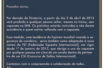 - 26/04/2013 - Comunicado URGENTE às Federações Equestres Estaduais